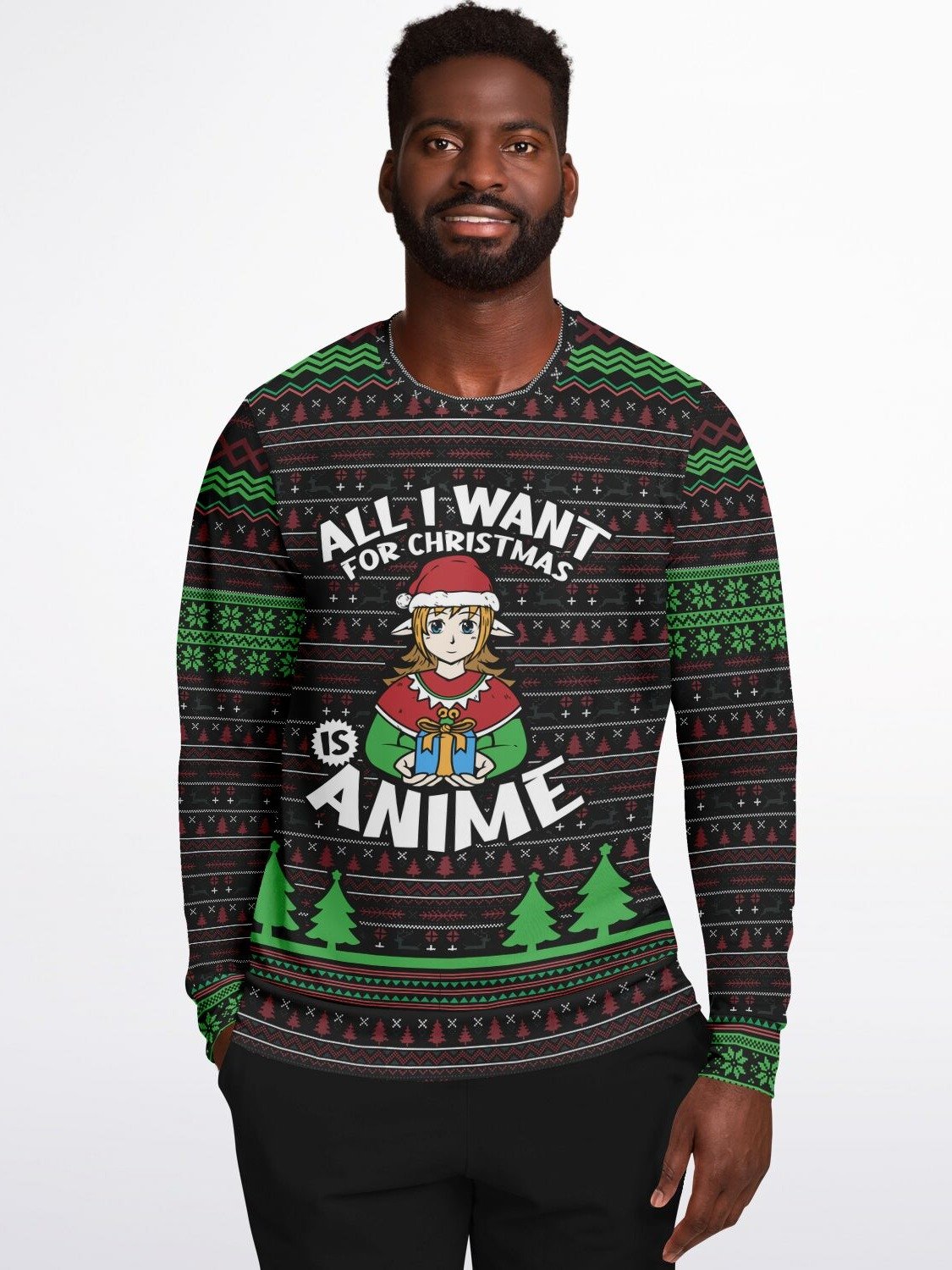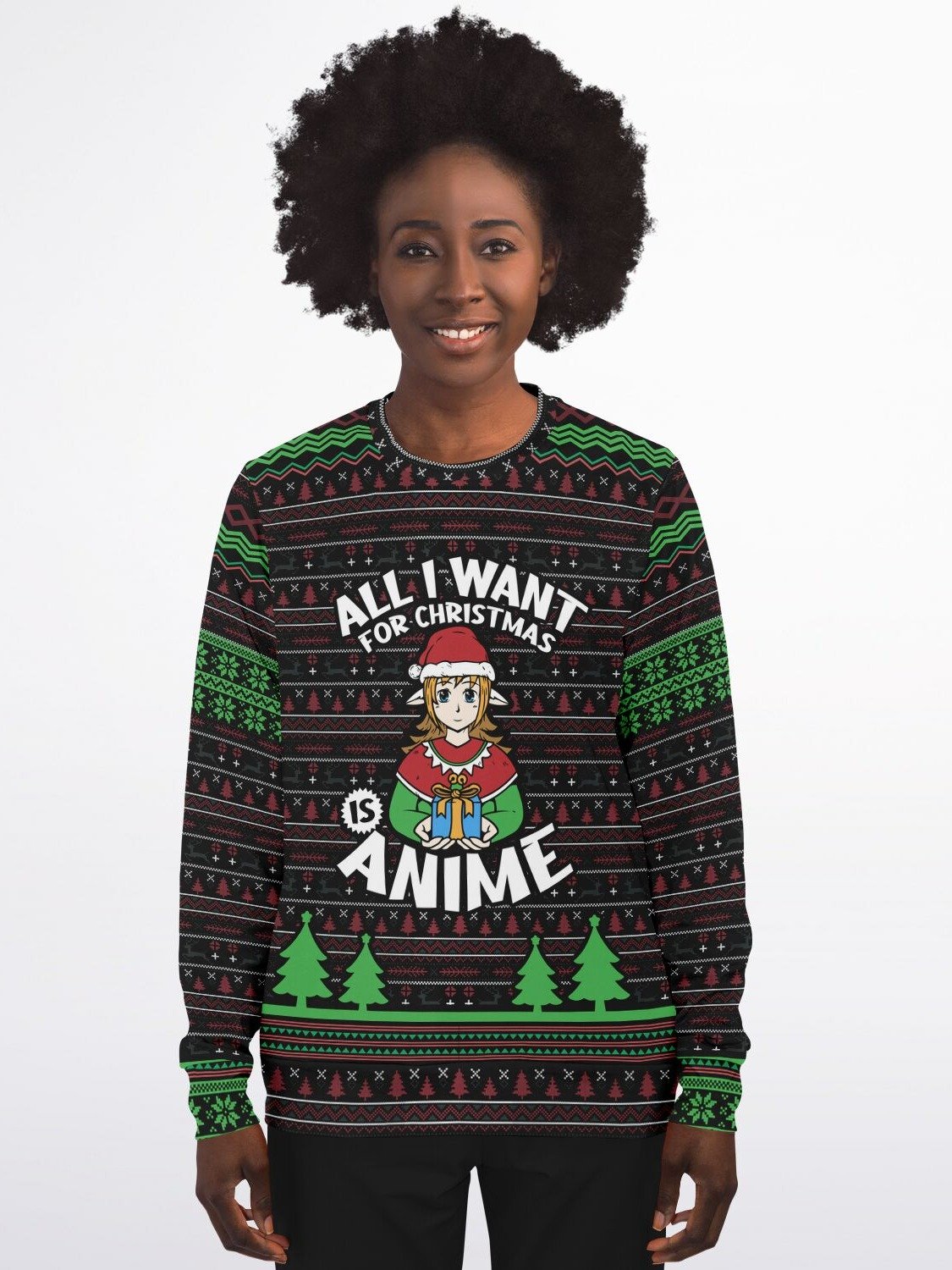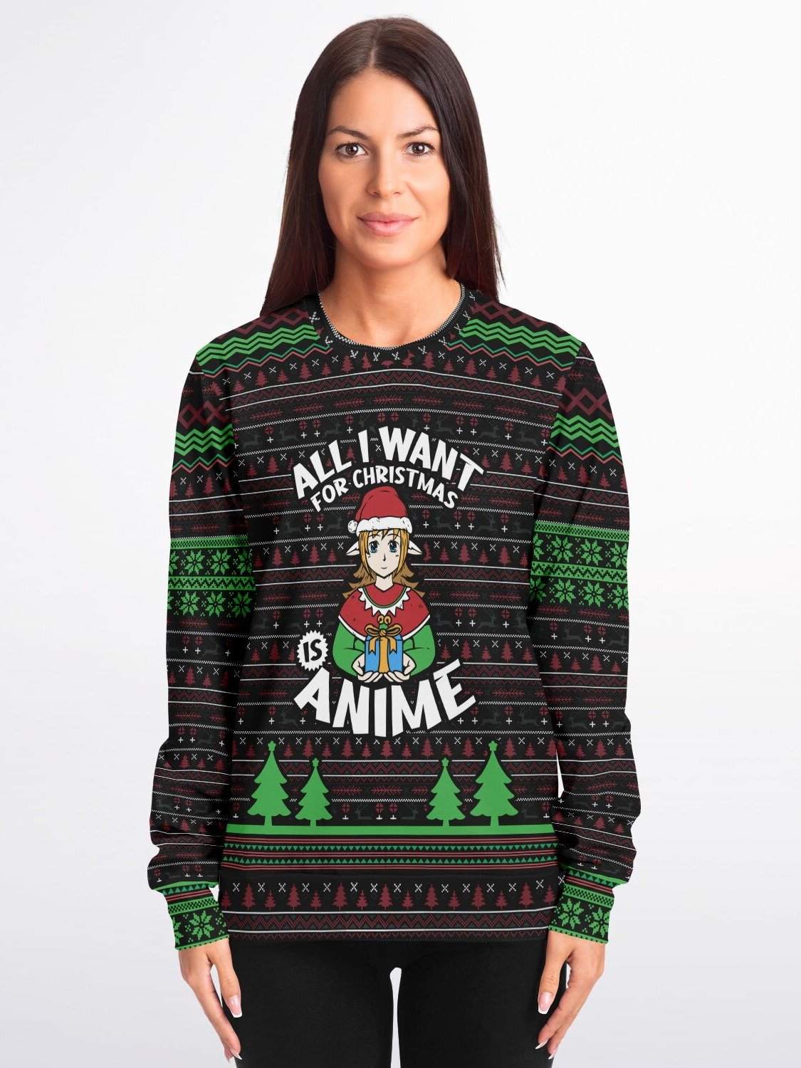 "All I want for Christmas is Anime" Christmas Sweatshirt | Japanese Manga Holiday Jumper | Otaku Festive Party Outfit | Unisex Kawaii Xmas Gift | Cozy Winter Sweater