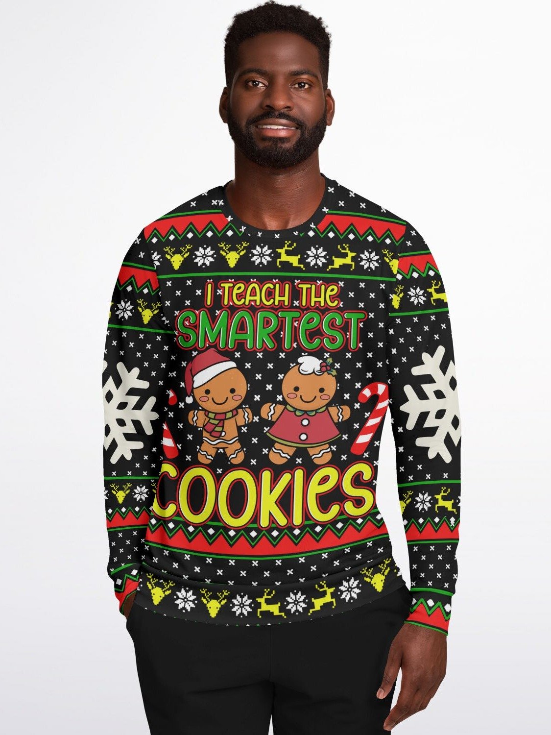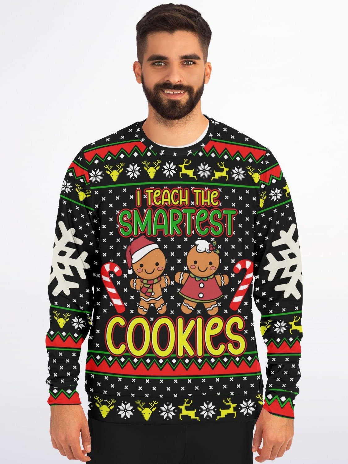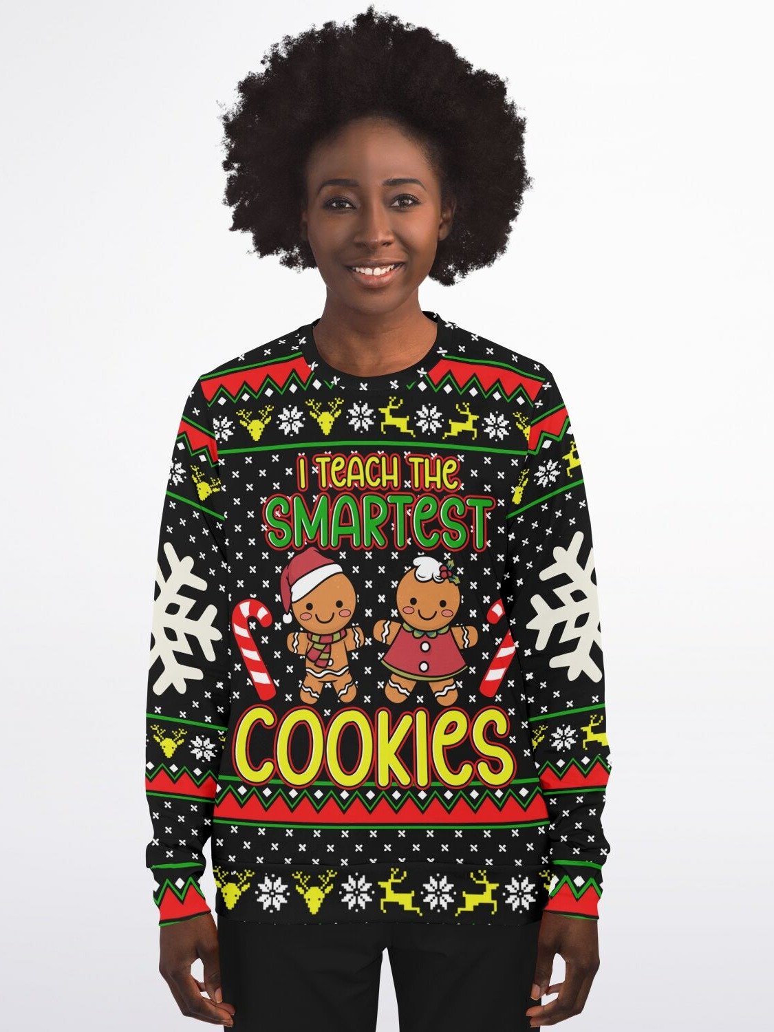 "I Teach The Smartest Cookies" Teacher Christmas Sweater | Funny Holiday Teacher Gift | Unisex Classroom Ugly Christmas Sweater | Elementary School Teacher Holiday Pullover