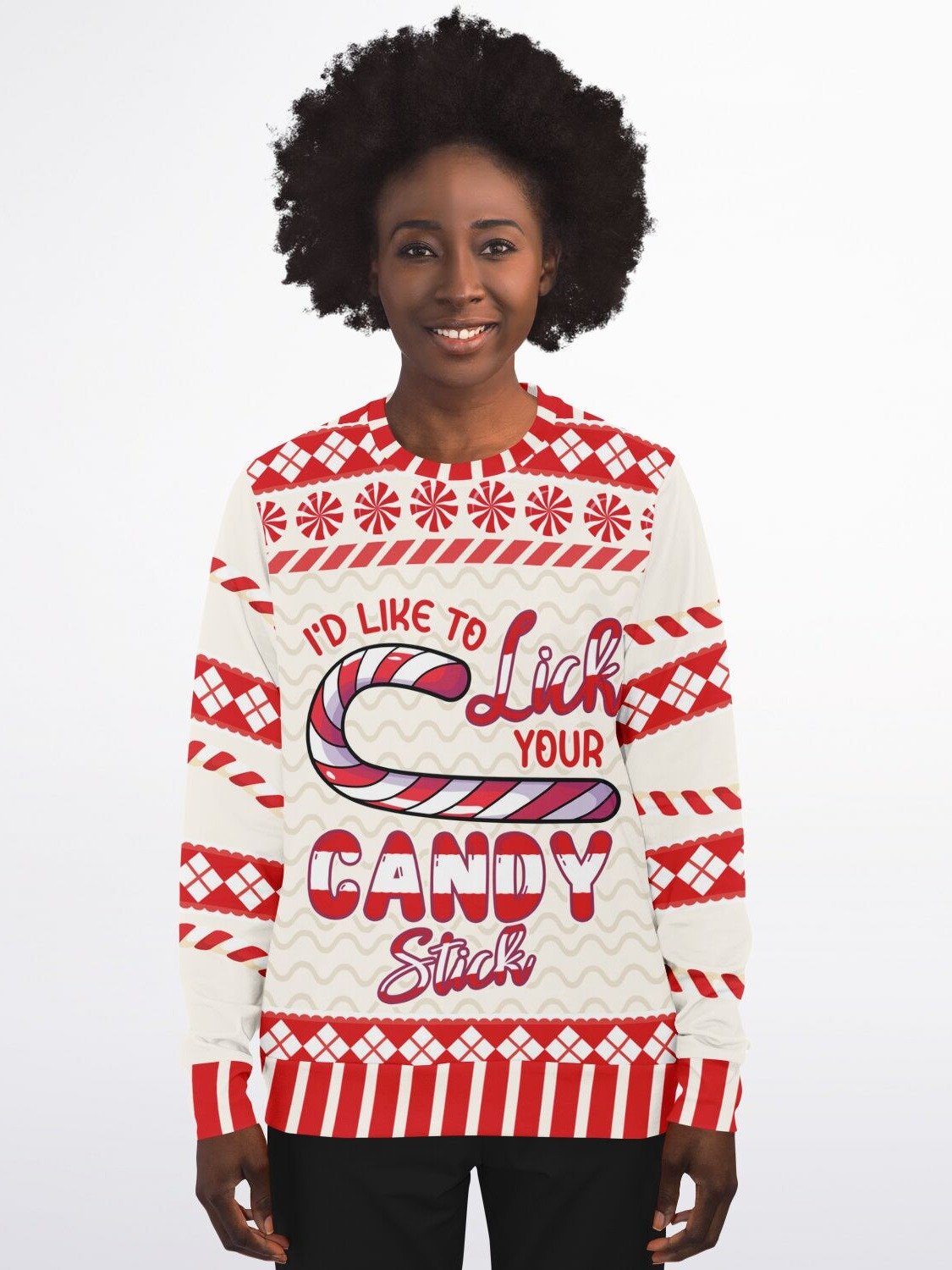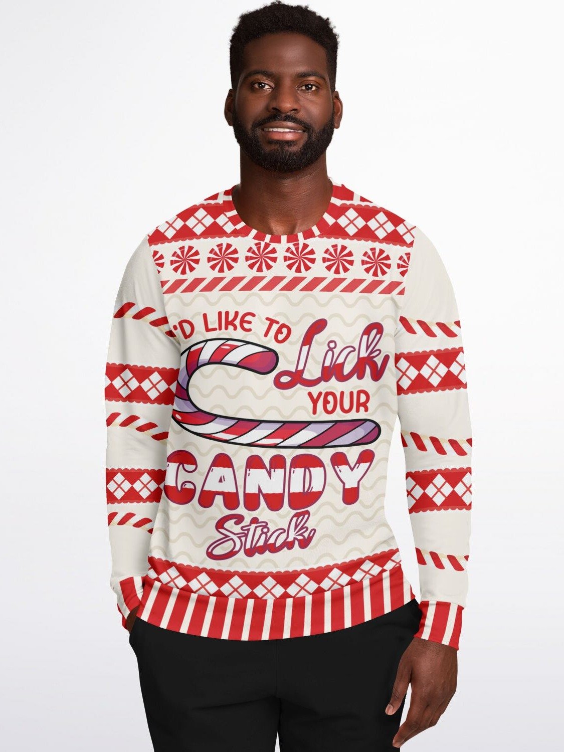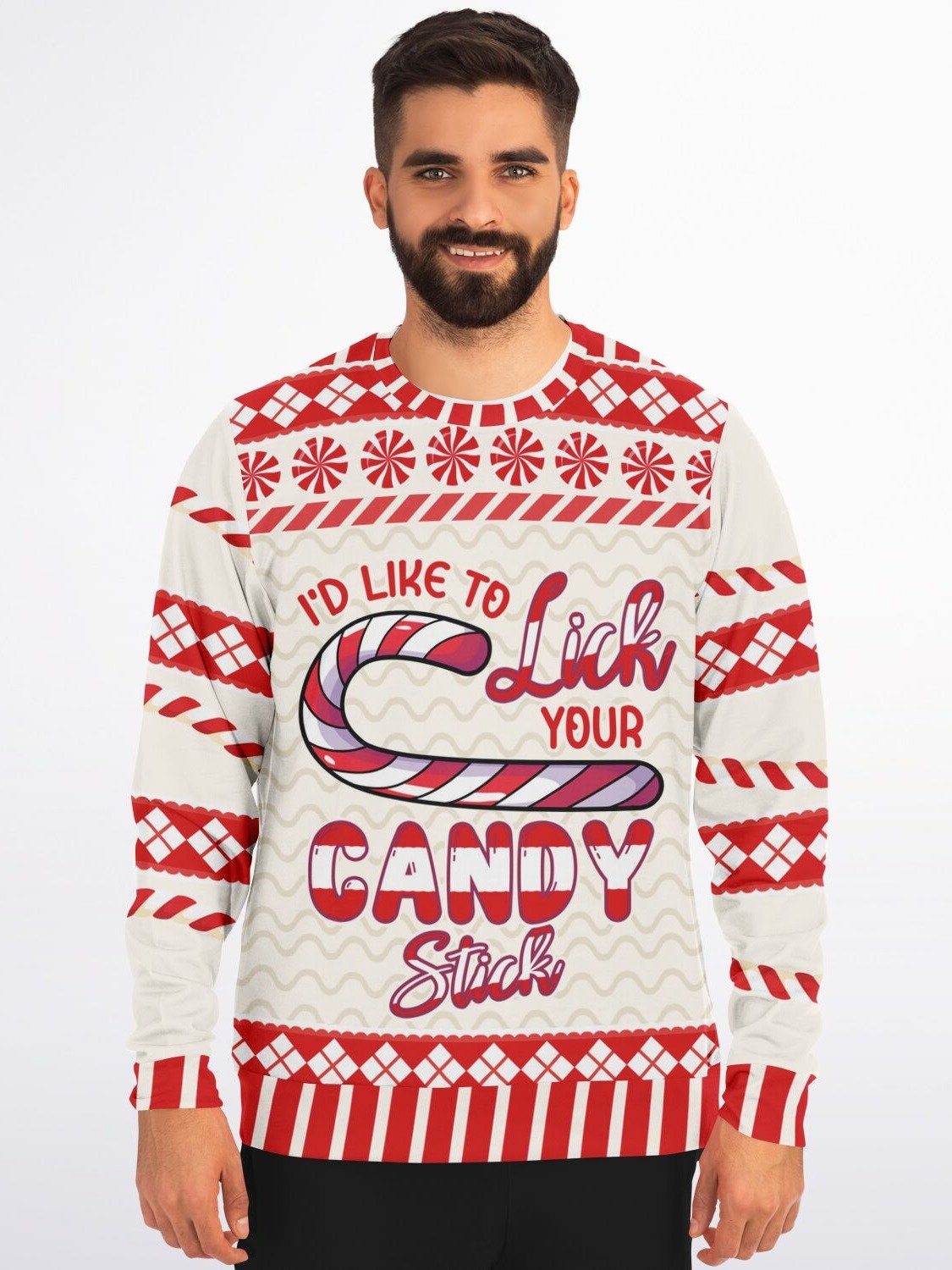 "I'd Like To Lick Your Candy Stick" Hilarious Adult Christmas Sweater | Ugly Holiday Party Sweatshirt