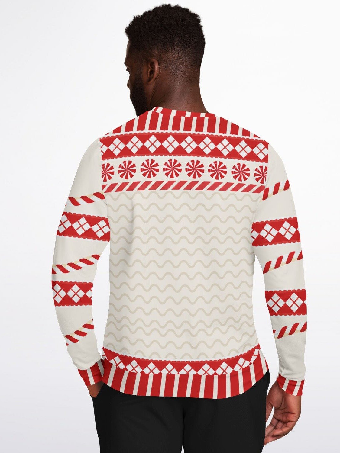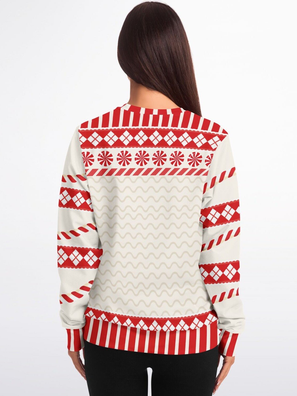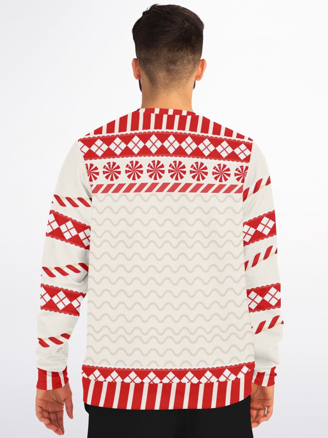 Ho ho... hold up! 🎅 This isn't your grandma's Christmas sweater (unless she's got an amazing sense of humor). Rock the holiday season with our deliciously naughty take on traditional holiday knitwear. This bad boy features a classic Scandinavian-inspired pattern with a candy cane that's definitely been hanging out on the naughty list.