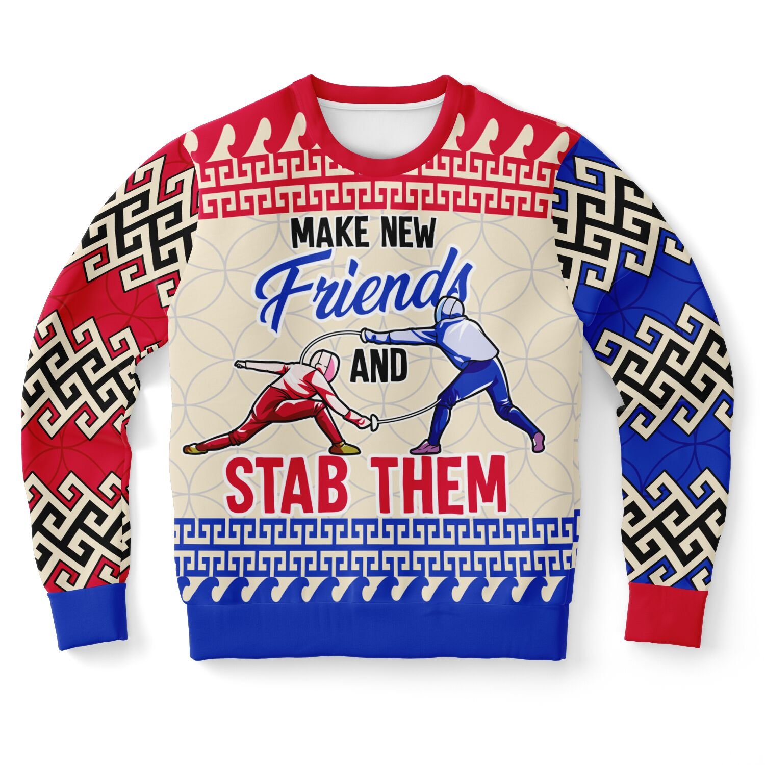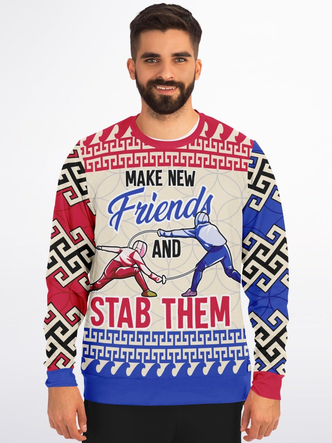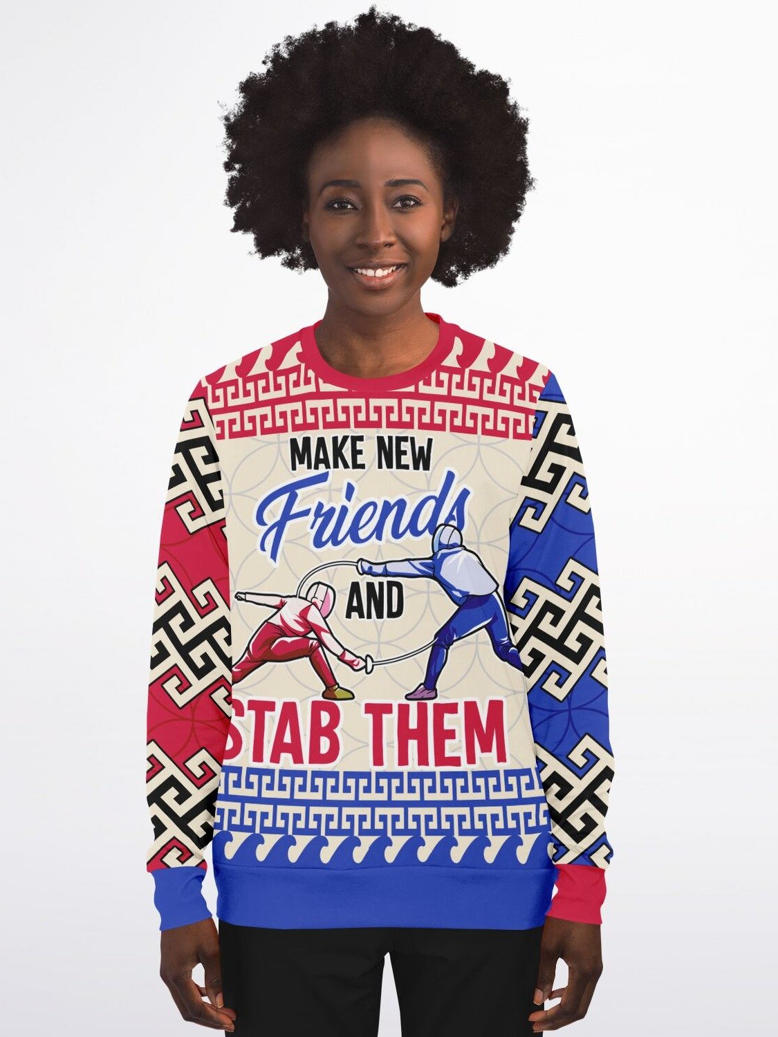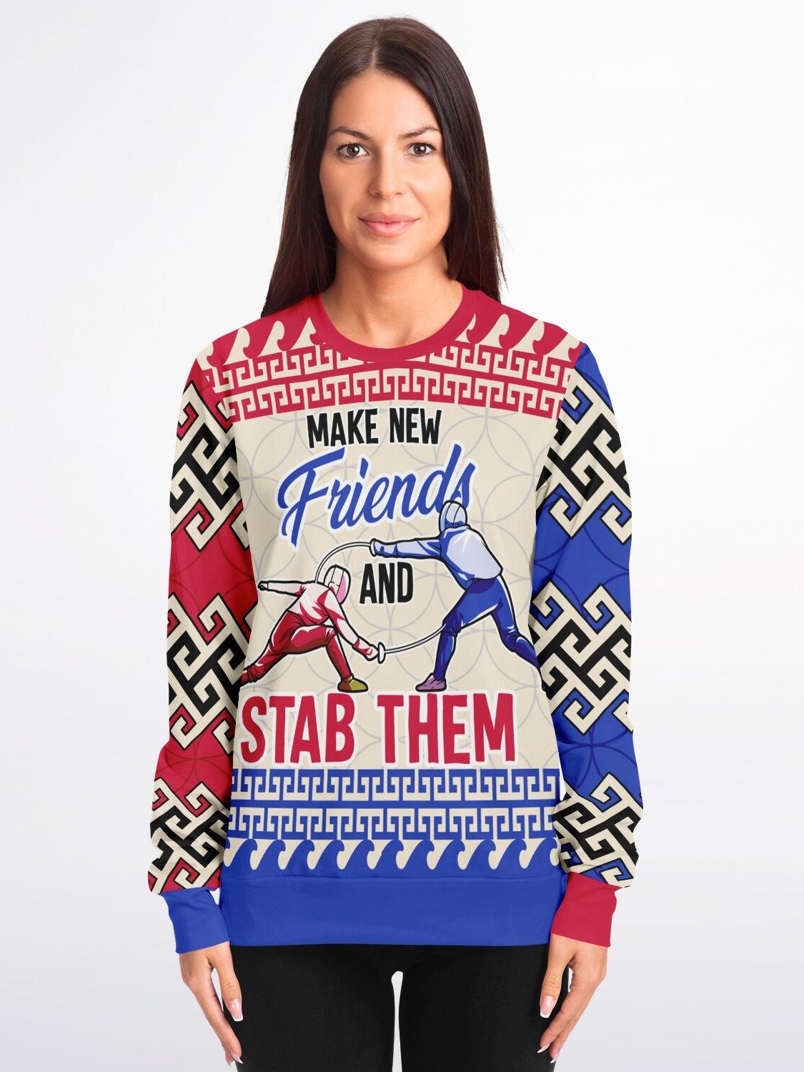 "Make New Friends and Stab Them" Fencing Sweatshirt – Fun and Playful Design for Fencing Enthusiasts