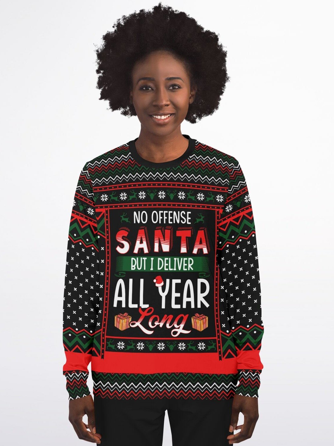 "No Offense Santa, But I Deliver All Year Long" Funny Delivery Driver Christmas Sweatshirt | Mail Carrier Party Outfit | Unisex Postal Worker Xmas Gift