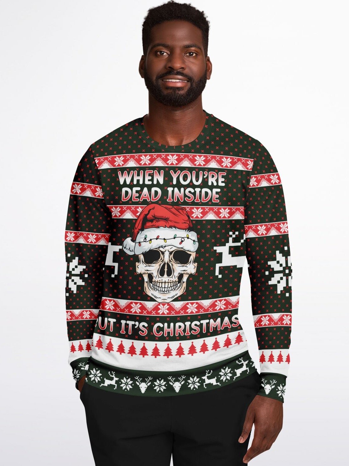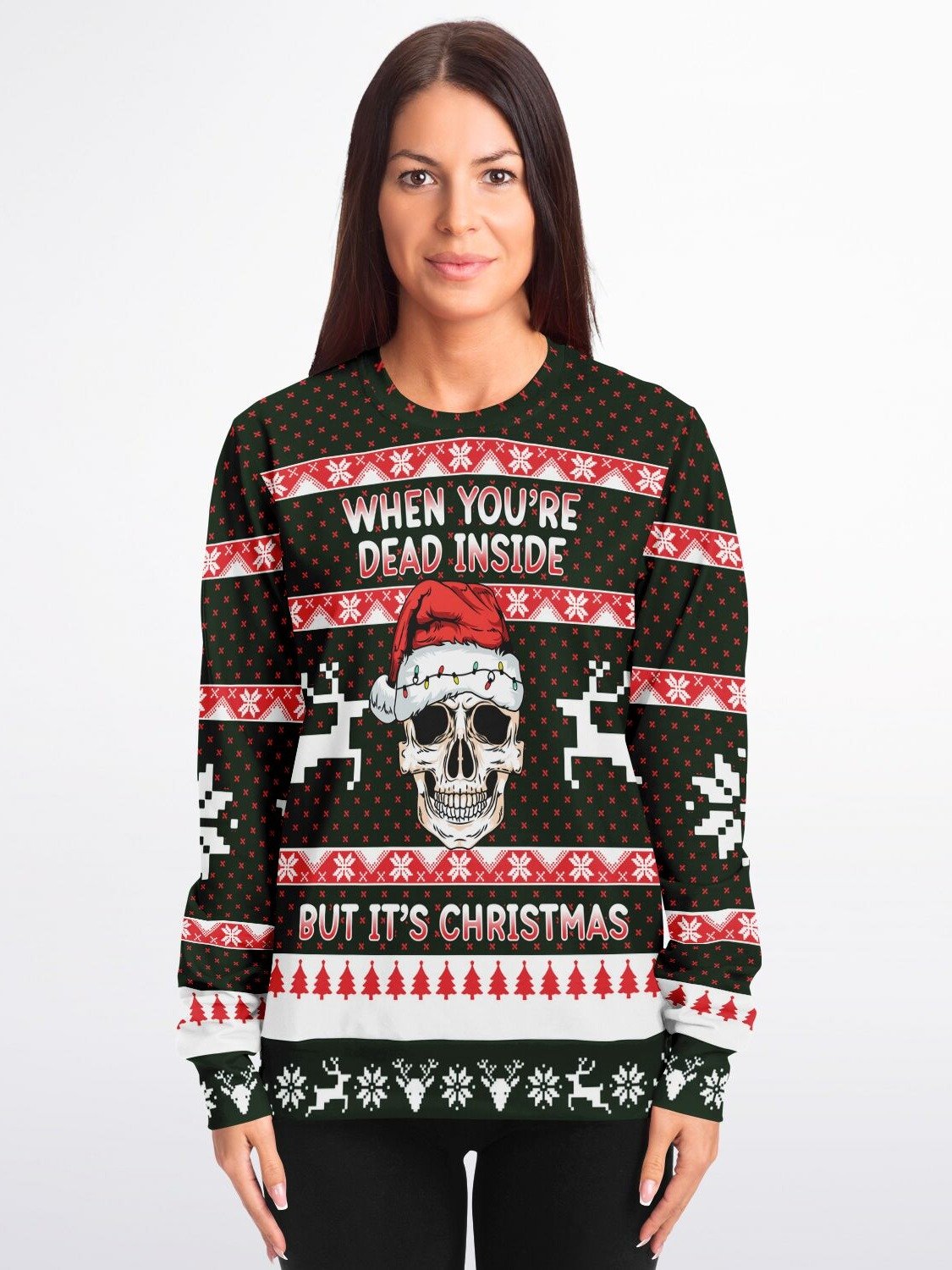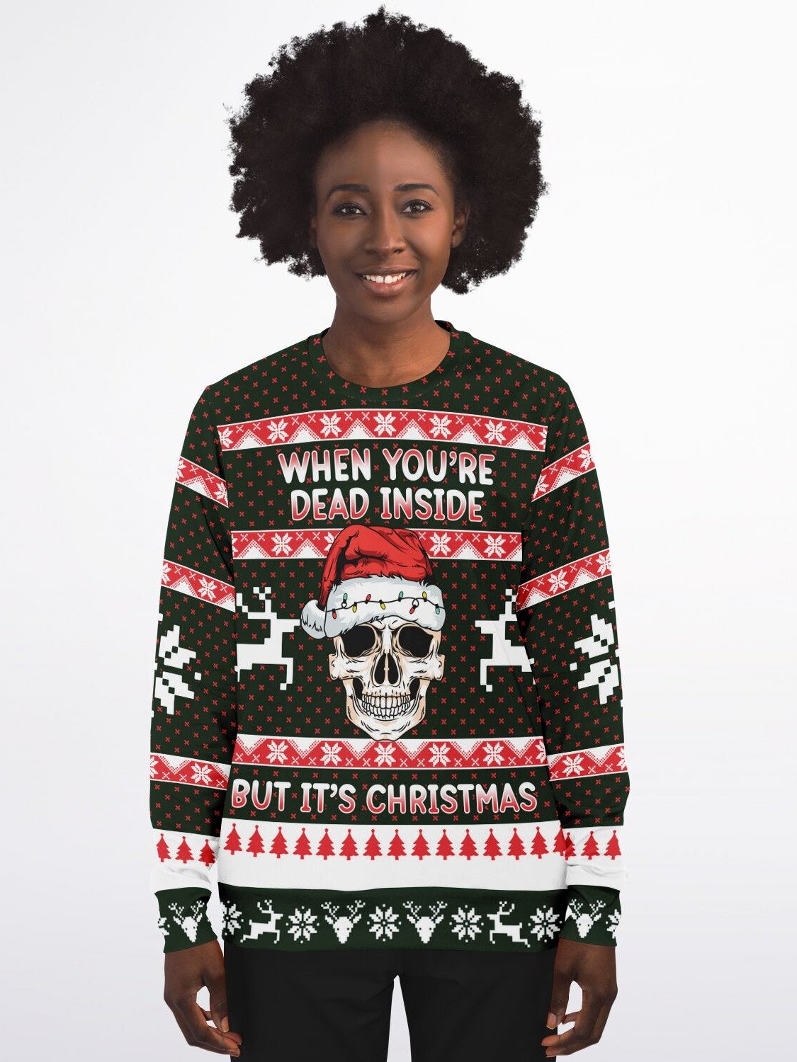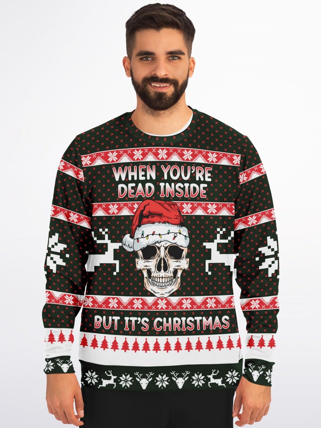 "When You’re Dead Inside But It’s Christmas" Sweatshirt – Funny Skull Holiday Sweater for Dark Humor Fans